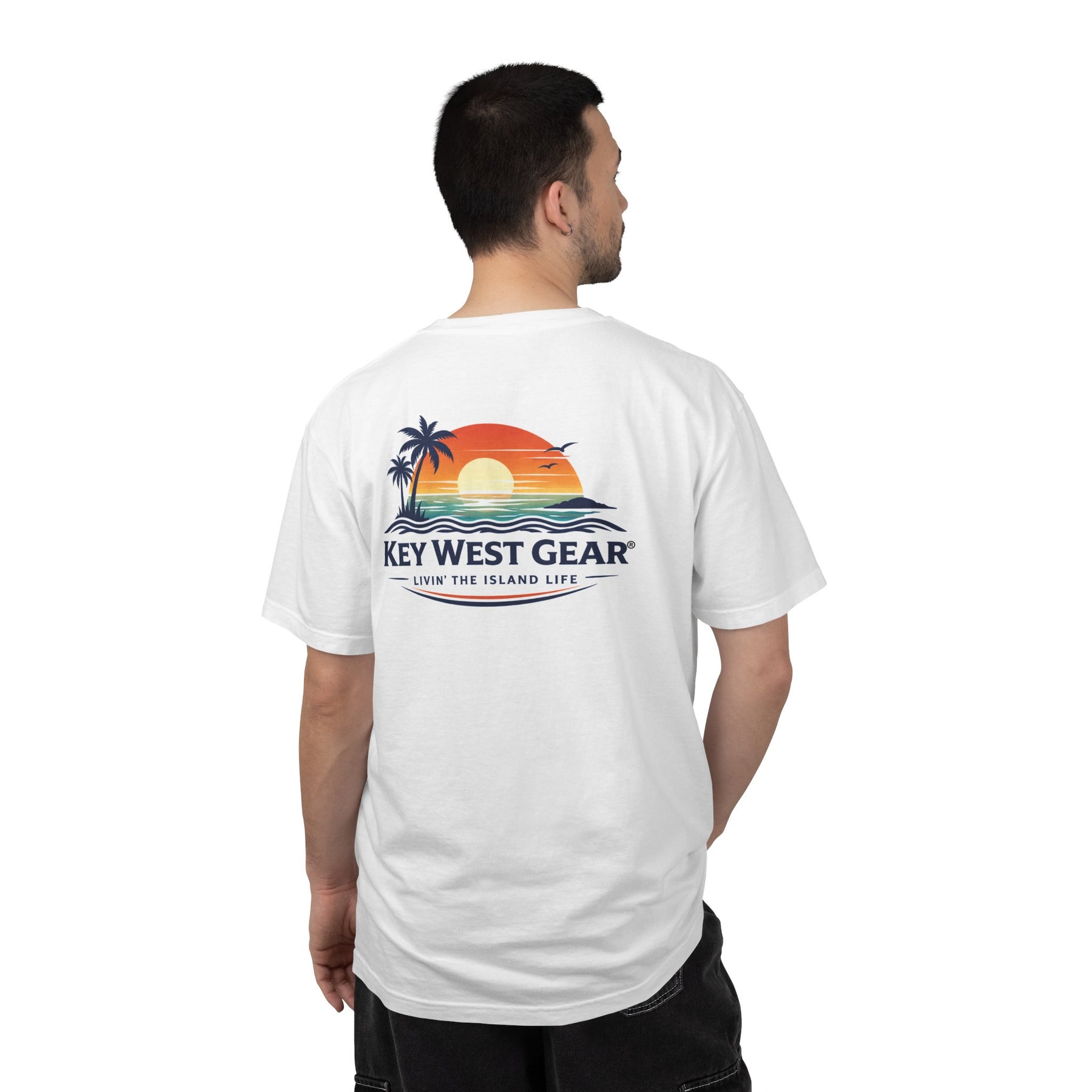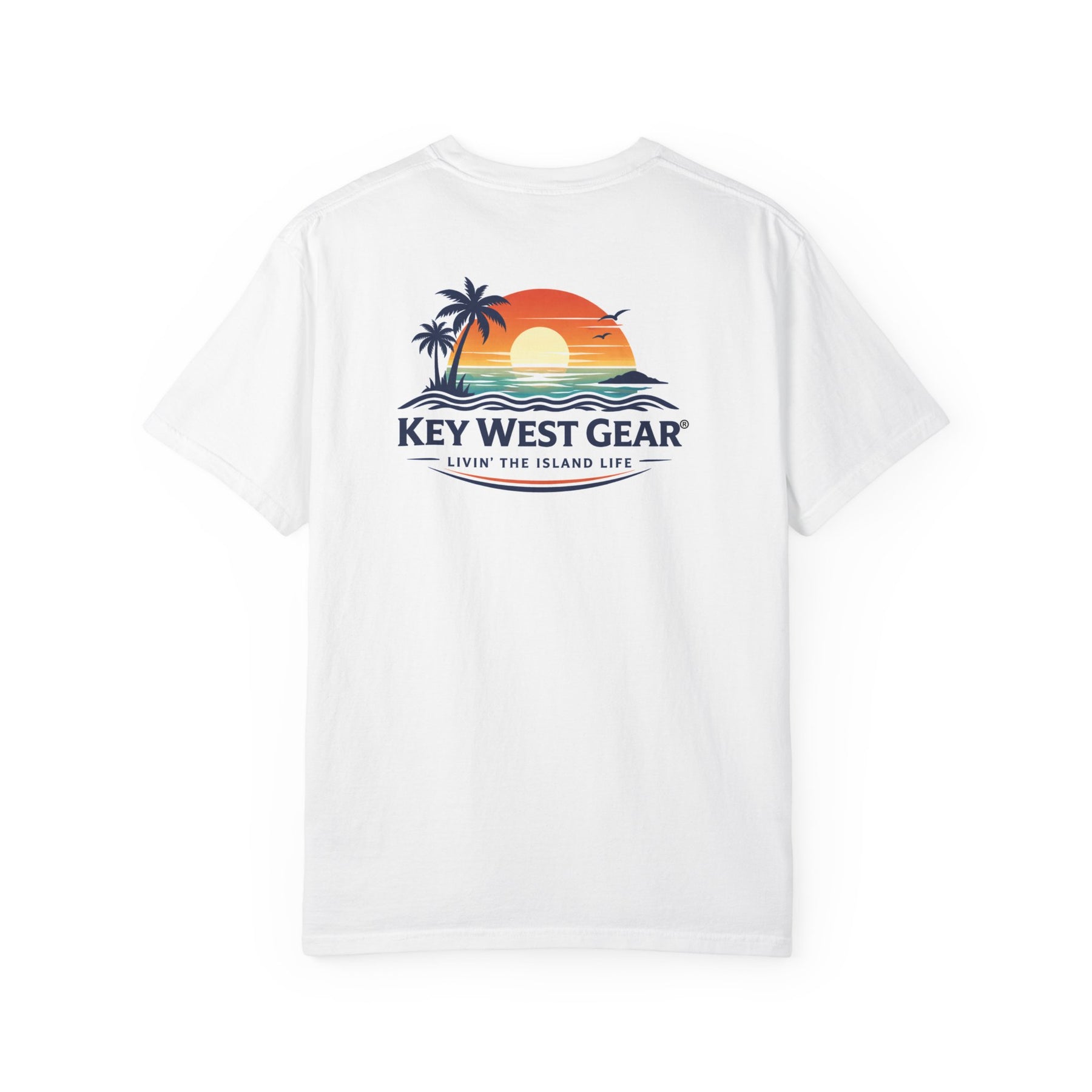 The Sunset Tee pairs a subtle chest mark with a bold back graphic inspired by the colors that close out a Key West day. Built for dockside dinners, slow horizons, and watching the sun sink into the water.